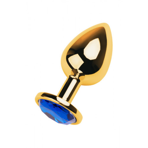 Gold anal plug TOYFA Metal with blue round-shaped gem, length 7,8 cm, diameter 2,3-4 cm, weight 170