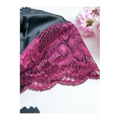 Халатик эротический из черного сатина с кружевом, размер S/M Очень соблазнительный халат черного цвета и уникального дизайна, ничего подобного еще не было! Халат очень роскошный, благодаря цвету и кружевной отделке вишневого цвета по всему изделию. Атлас выглядит очень легко и будет струится по телу оставляя между Вами и партнером тончайшие миллиметры приятной ткани.