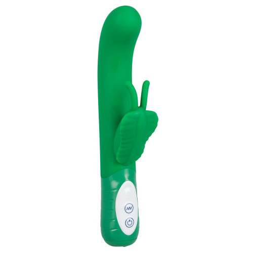 Вибратор с клиторным стимулятором в форме бабочки. Имеет плавно изогнутую форму для интенсивной стимуляции точки "G" и нежную гладкую поверхность. 7 режимов вибрации регулируются кнопками на рукоятке вибратора. Игрушка синего цвета изготовлена из высококачественных материалов, безопасных для здоровья. Длина - 22 см, диаметр - 3 см.