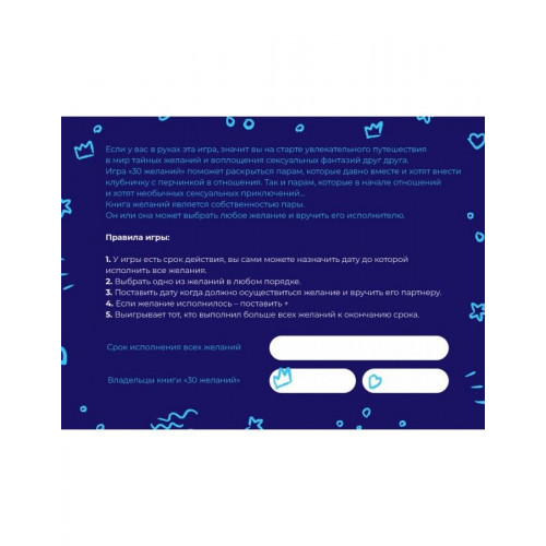 - У игры есть срок действия, вы сами можете назначить дату до которой исполнить все желания.