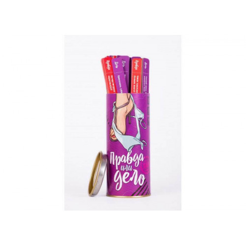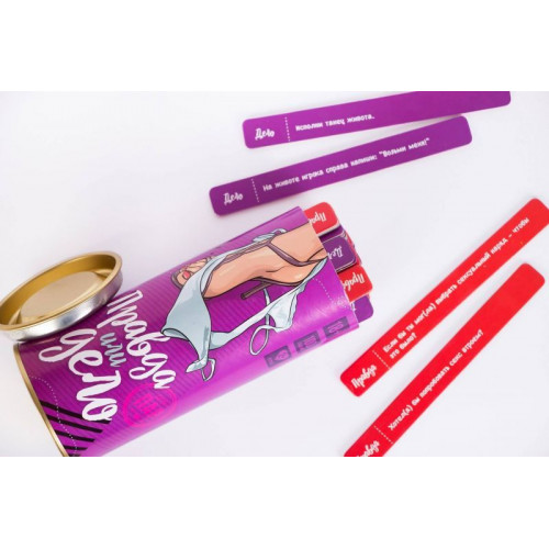 Это игра для влюбленных пар или для очень близких друзей, которые не стесняются пикантных вопросов и очень откровенных заданий. Влюбленным парам игра поможет освежить отношения, раскрепоститься, а возможно даже узнать что-то, о чем раньше не смели спросить. Правила очень просты: игрок выбирает "Правду" или "Дело", тянет стик и выполняет соответствующее задание. Если "Правда" - игрок отвечает на вопрос с красной стороны стика, если "Дело" - выполняет задание с фиолетовой стороны. В этой игре нет победителей и проигравших, расслабтесь и получите удовольствие от процесса игры.