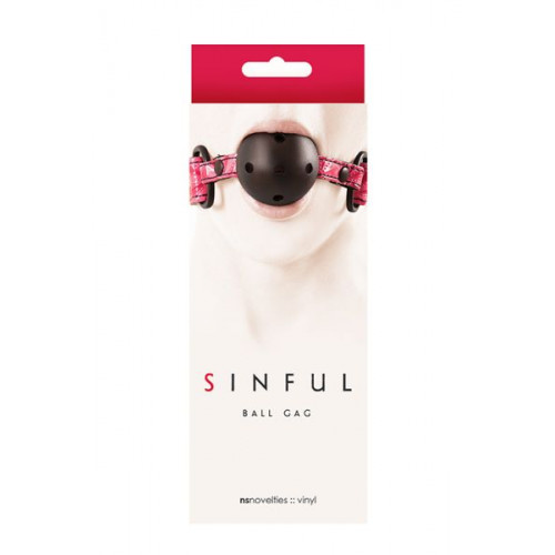 Кляп-шар из коллекции БДСМ "SINFUL" от нового бренда NS Novelties. Кляп имеет отверстия для воздуха и регулируемый ремень для максимально комфортного использования. Вся коллекция выполнена в ярком оригинальном стиле, с необычным тиснением.