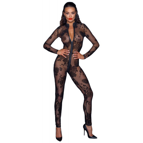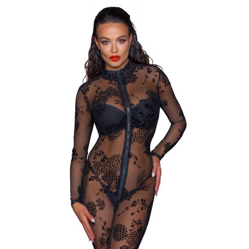 Комбинезон сексуальный полупрозрачный L F237 Noir Handmade, с узором и молнией