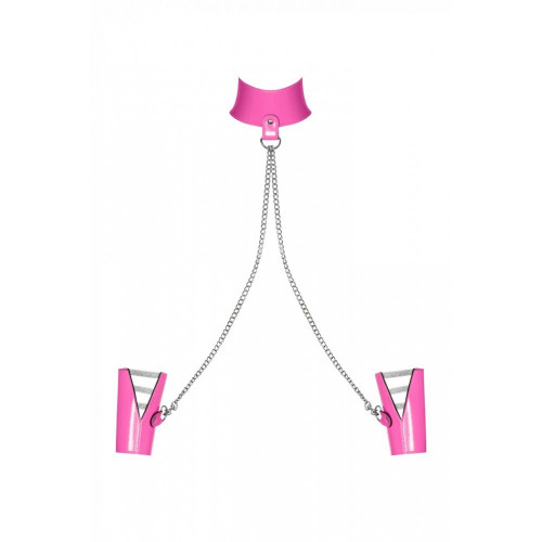 Комплект чокер із наручниками Obsessive Lollypopy Cuffs One Size Рожеві