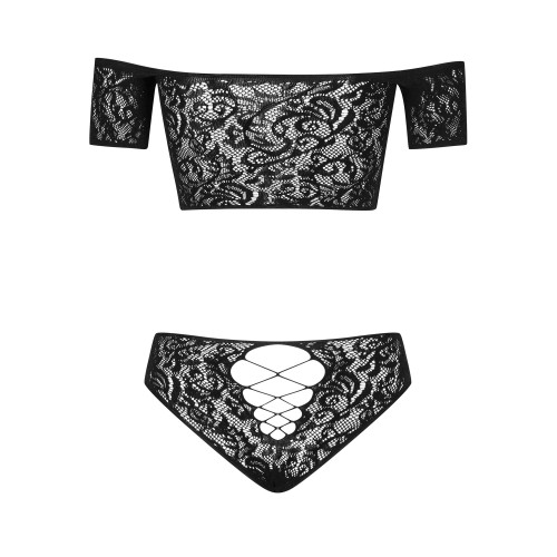 Комплект кружевной топ и трусики Obsessive Inessita set Black XL/XXL