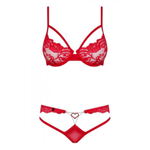 Комплект красный Obsessive S/M - коллекция специально ко дню всех влюбленных . комплект в страстном цвете с романтическими деталями , мягкие кружевные чашки на косточках , бретели регулируют посадку бюстгальтера , сексуальные трусики из прозрачного тюля с деликатным кружевом , заниженная линия талии . Украшение из блестящих страз в виде сердечка придает романтического настроения, Производитель Obsessive, давно зарекомендовал себя на просторах качественного белья и костюмов для игр и пользуется огромным спросом у гурманов и любителей прекрасного, красивого белья. Плотная качественная упаковка, внутри с бумагой и подарочной открыткой. Блестяще подойдёт для подарка, от которого любая девушка будет в восторге.