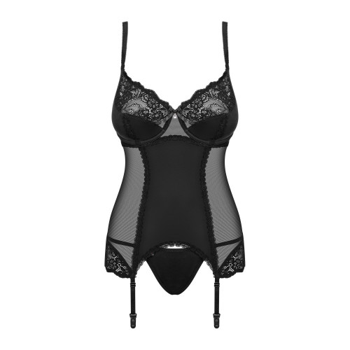Эротический корсет с кружевом Obsessive Amallie S/M, стринги в комплекте, черный