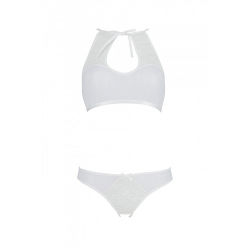 Комплект Passion URSULA SET white S/M: бра, трусики с ажурным декором и открытым шагом