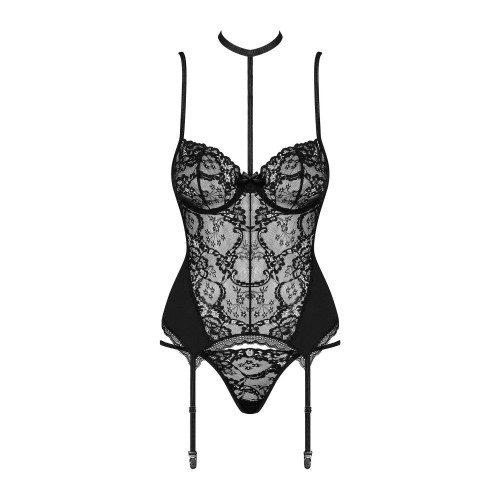 Сексуальный корсет с кружевными вставками, с чулковыми держателями, с трусиками в комплекте Obsessive Diyosa черный, S/M Соблазнительный черный корсет с кружевными вставками и декором в районе бюста – то, что нужно для покорения сердца второй половинки! Продуманный дизайн подчеркнет красоту изгибов, извлекая фигуру. Почувствуйте себя соблазнительной и раскрепощенной в этом комплекте корсета с трусиками! В комплекте к кружевному корсету добавляются трусики-стринги, которые также имеют кружевную вставку сзади и добавляют общую картину баловства. Сексы чулки станут отличным дополнением к образу, делая его завершенным и невероятно соблазнительным!