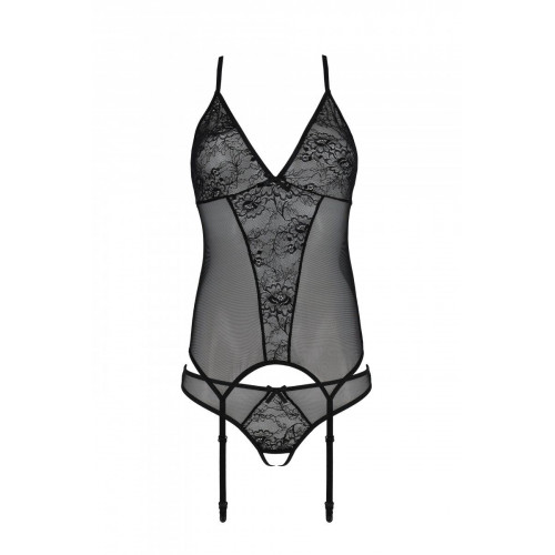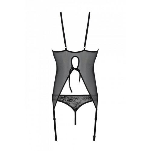 Корсет с пажами, трусики с ажурным декором и открытым шагом Ursula Corset black XXL/XXXL — Passion: