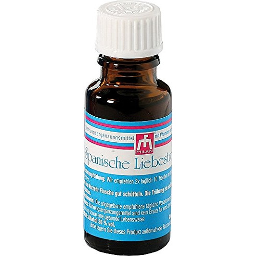 Возбуждающее средство (Испанская мушка) для мужчин и женщин - капли для повышения сексуального желания. В состав входит кантарідан (содержится в крови и половых железах испанских мушек) в гомеопатическом разведении (Д6), а также эфирные масла и розмарин, которые используются в народной медицине для приготовления любовных средств. Объем - 20 мл.