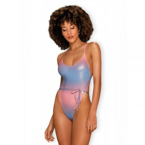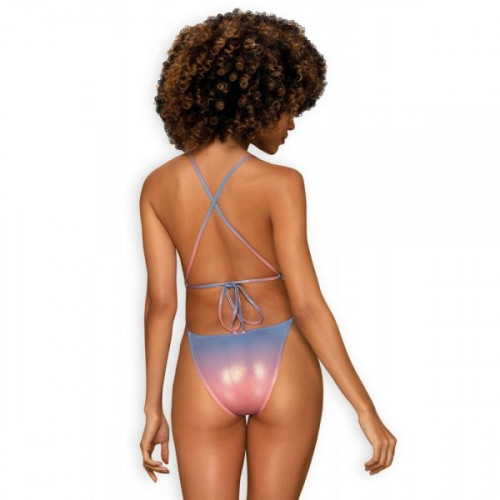 Сверкающий костюм Rionella с металлическими оттенками этим летом закружит вам голову! Сексуальный стиль завязывания на талии - это еще не все, мы также приготовили что-то заманчивое сзади - высокий подол в стиле 90-х! Он оптически удлинит ваши ноги и сделает их такими красивыми, что вы захотите показать их всему миру!