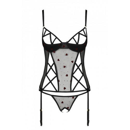 Корсет с подвязками + стринги LOVELIA CORSET black L/XL - Passion с романтическим рисунком и соблазнительными вырезами сведет с ума вашего партнера! А благодаря комфортному крою корсет можно носить достаточно долго.