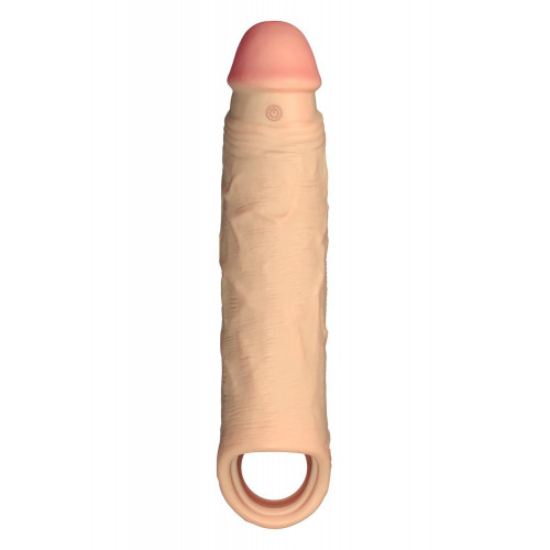 Насадка на пенис Shaft Vibrating с вибрацией и пультом, бежевая, 22.3 см