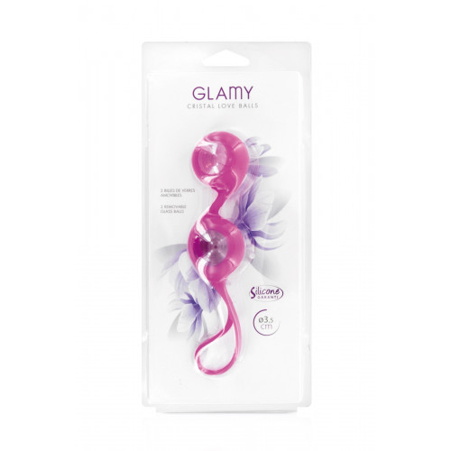 Стеклянные вагинальные шарики Glamy Cristal Love Balls для тренировки интимных мышц, розовые