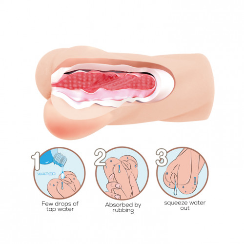 Компактний мастурбатор виконаний у вигляді реалістичної вагіни з статевими губами і тугим релефним каналом. Зроблений з м'якого еластичного матеріалу - термопластичного еластомеру, приємного на дотик. Завдяки зовнішньому рельєфу, мастурбатор легко утримувати в руці. Довжина - 11,5 см.