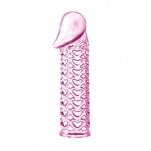 Силіконова, еластична насадка на пеніс з вирізаними декорованими сердечками. Колір рожевий. Розміри: довжина: 13 см, діаметр: 3,6 см.