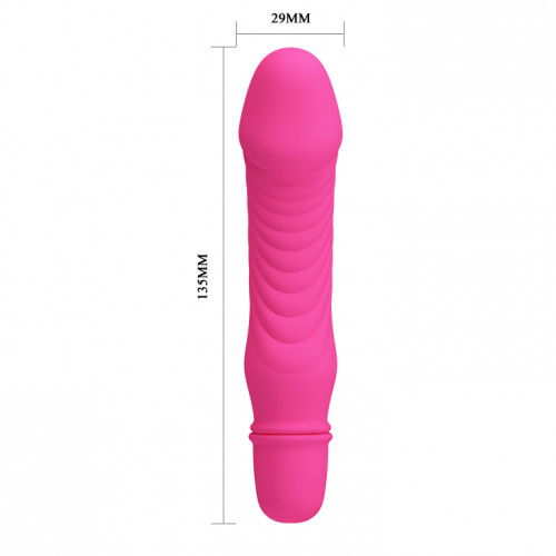Компактний вібратор, виготовлений з високоякісного силікону з оксамитовим покриттям. Має збільшену головку і злегка рельєфний ствол для оптимального впливу на точку "G". 12 різними варіантами вібрації легко керувати в підставі. Довжина - 13,5 см, діаметр - 2,9 см. Пакування товару може відрізнятись.
