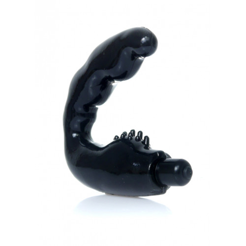 Массажер простаты черного цвета. Изготовлен из приятного на ощупь пластика. Обладает усовершенствованной формой, которая обеспечивает усиленную стимуляцию предстательной железы и промежности. Игрушка оснащена мощной вибрацией и встроенным контроллером. Длина - 13,5 см, диаметр - 2,8 см.