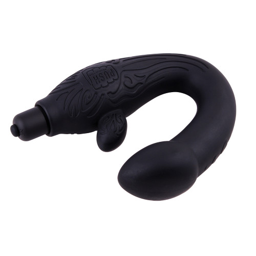 Массажер простаты анатомической формы с закругленным кончиком и отростком для стимуляции промежности. Выполнено в черном цвете из шелковистого гиполлергенного материала, приятного на ощупь. Оснащен мощным виброэлементами. Длина-25 см, диаметр - 4 см.