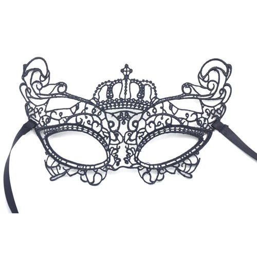 Маска ажурная маскарадная с высокими краями, на завязках, черная