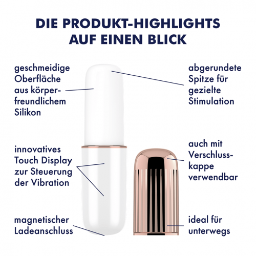 Небольшой, мощный и тихий вибратор для стимуляции клитора, который удобно носить с собой, — то, что пригодится буквально каждой. Попробуйте этот вибратор, и он станет вашим любимчиком. Satisfyer Mini Lovely Secret Affair — это: