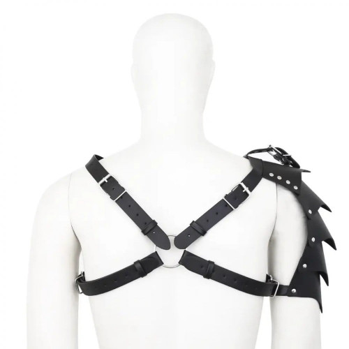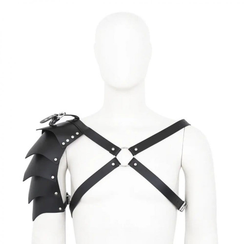 Эротическая мужская портупея с объемным плечом Flank, экокожа, черная, One Size