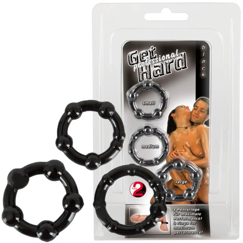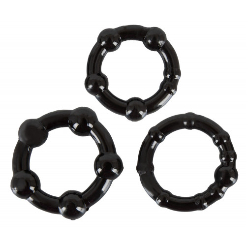 Набор черных ерекційних колец с различными бугорками 3-4 см. Помогут продлить половой акт, будут держать мужской половой орган в возбужденном состоянии и тем временем стимулировать влагалище партнерши. В наборе 3 шт.