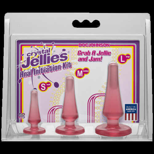 Предлагаем купить набор анальных пробок Doc Johnson Crystal Jellies Anal Initiation Kit. Стимуляторы имеют плоское основание, которое одновременно служит безопасным ограничителем.Набор выполнен из современного гипоаллергенного материала с добавлением антибактериальной формулы Sil-A-Gel. В наборе три классические пробочки для анальной стимуляции. Форма конческая, с безопасным уширением к низу и ограничителем. Этот набор идеален и для новичков, только открывающих для себя мир анальных наслаждений, и для более опытных партнёров - для стимуляции ануса перед сексом или использования во время классической близости. Анальные втулки изготовлены из приятного прозрачного эластомера, умеренно упругие и гибкие для комфортного введения.