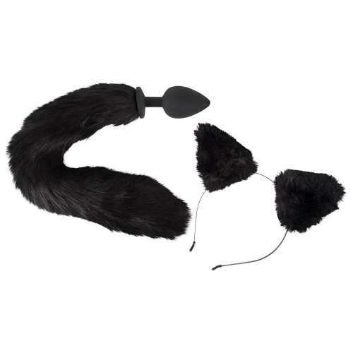 Этот черный набор идеально подходит для петплей анальных игр. Состоит из анальной пробки с кошачьим хвостом и ободка с кошачьими ушками (розовыми внутри).