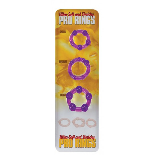 Набор эрекционных колец Ultra Soft & Stretchy Pro Rings Purple. Кольца выполнены из очень мягкого и тянущегося материала, с дополнительными шипиками. Повышает потенцию и продлевает удовольствие.