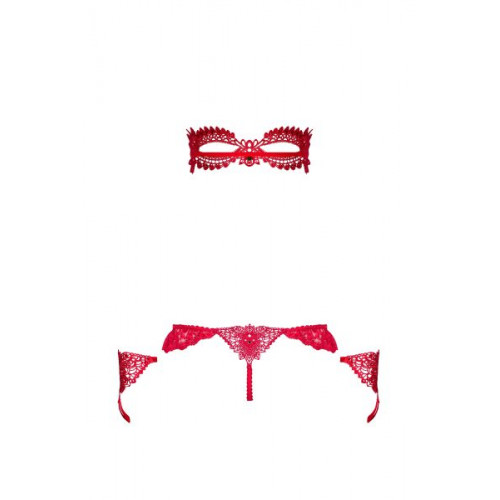 Набор маска+наручники+стринги Obsessive Hetea 3 pcs set red L/XL