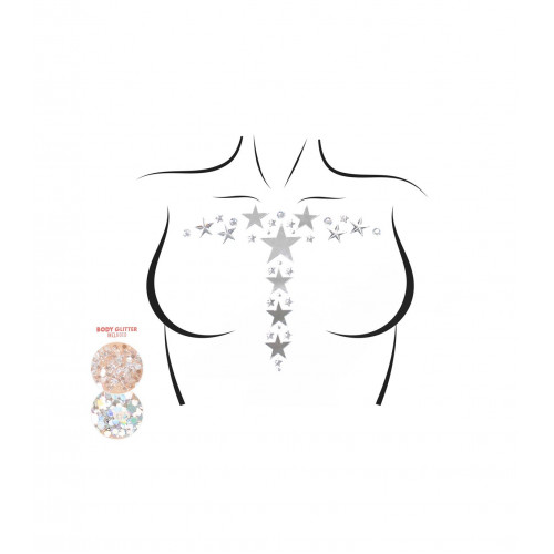 Клейкая наклейка Kismet с зеркальной звездой и стразами для тела и (2) упаковки с блестками для тела по 3 г.