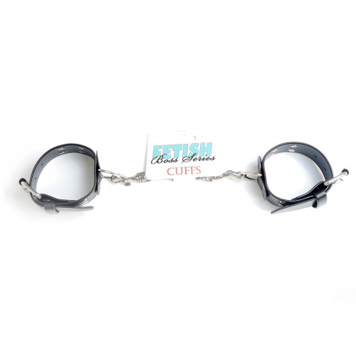 Широкие наручники для развлечений в стиле БДСМ. Изготовлены из мягкой искусственной кожи черного цвета, декорированы металлическими заклепками. Наручники соединены между собой при помощи металлической цепочки (длина - 5 см). Аксессуар универсальный, размер регулируется при помощи пряжек. Ширина наручников - 4 см.