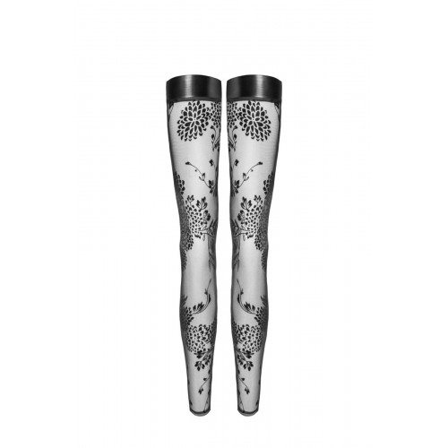 Чулки Noir Handmade F243 Tulle stockings with patterned flock embroidery - L