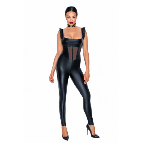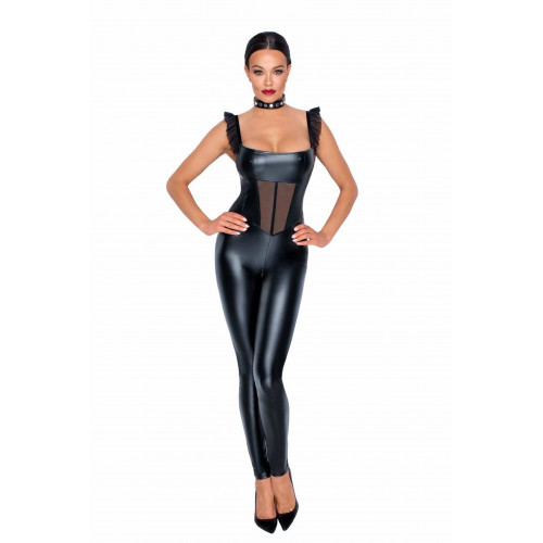 Комбинезон из винила со вставкой из сеточки Noir Handmade F256 черный, M