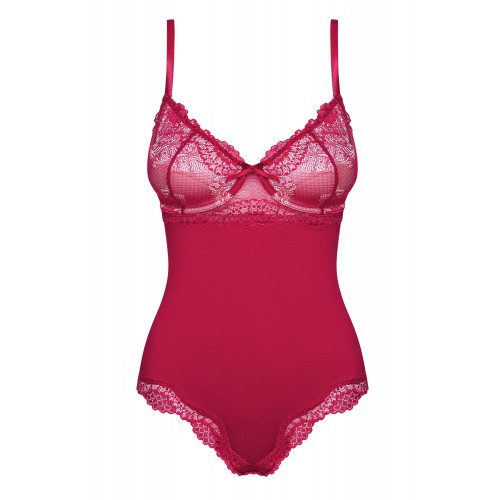 Боди сексуальное с кружевными вставками Obsessive Rosalyne красное, L/XL