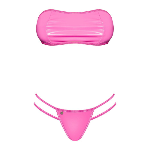 Глянцевый розовый материал придает комплекту особого шарма, а продуманный дизайн трусиков обеспечивает удобство при носке.