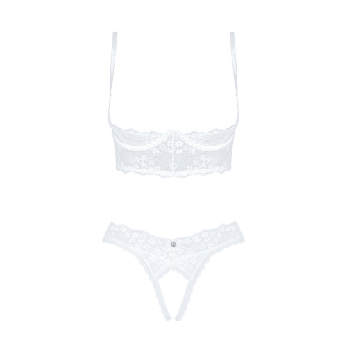 Сексуальный белый комплект Obsessive Heavenlly лиф открытый и трусики с открытым доступом, XS/S
