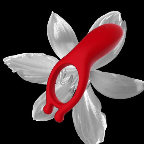 Вибрационное эрекционное кольцо Every Night Toys с отростком для стимуляции клитора, красное