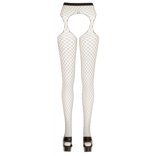 Сітчасті колготки чорного кольору з вирізом на стегнах і в інтимній зоні. Модель імітує панчохи, відрізняється високою еластичністю і зносостійкість. Ідеально підходять для інтимних ігор і вечірок.