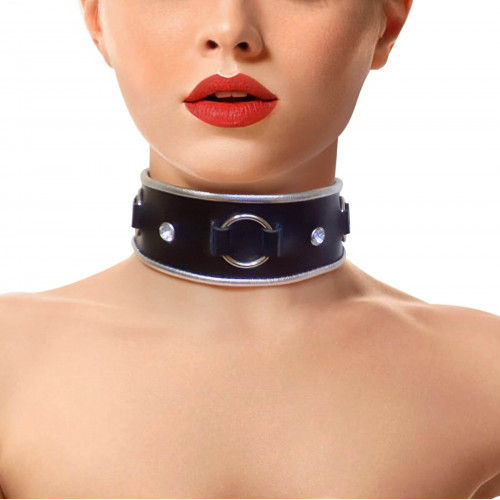 Ошейник Art of Sex - Collar Ring – кожаный ошейник со стразами и кольцом.