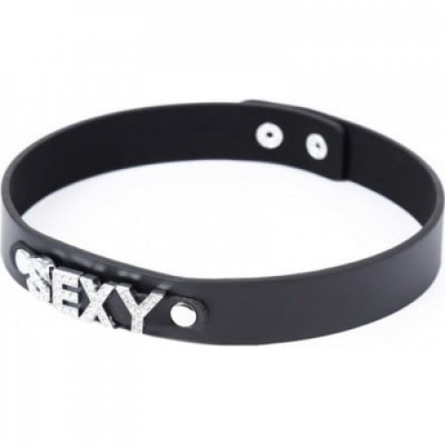 Ошейник с надписью SEXY из страз, кожзам, черный