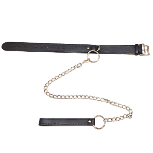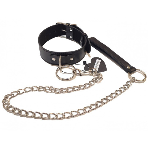 Ошейник с поводком на цепочке, экокожа, черный