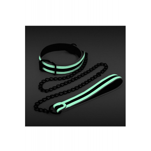 Ошейник с поводком, светятся в темноте NS Novelties GLO BONDAGE COLLAR AND LEASH GREEN