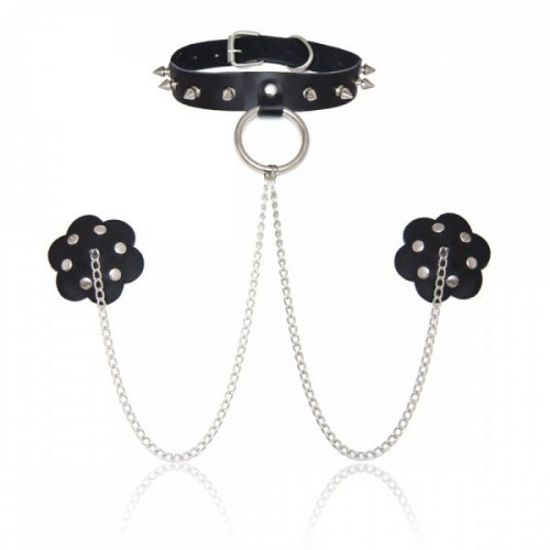 Необычный ошейник с пэстисами для сосков.