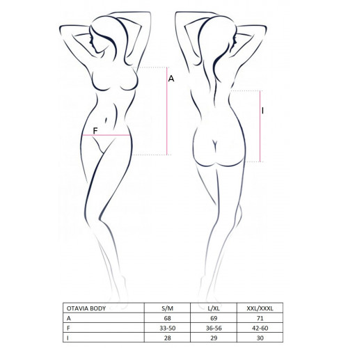 В нашем магазине вы можете купить кружевное боди Passion Erotic Line OTAVIA BODY. Данная модель выполнена из тонкого черного кружева, которое очень приятно на ощупь. Глубокий V-образный вырез и открытая спина делают силуэт более стройным и утонченным. Нижняя часть боди декорирована полупрозрачной оборкой. Кружевное боди акцентирует внимание на бедрах и ягодицах, подчеркивая их красоту. Побалуйте себя невероятно сексуальным и женственным бельем.