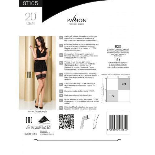 Чулки ST105 бежевые с черным и красным убранством, 1/2 (20 ден) - Passion