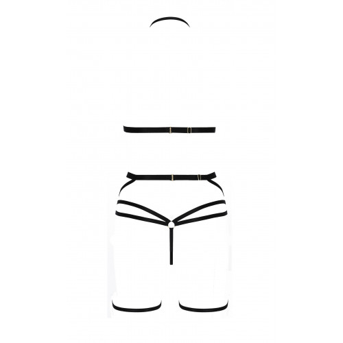 Комплект белья со стреп-лентами и поясом для чулок MORGAN SET WITH OPEN BRA black S/M - Passion