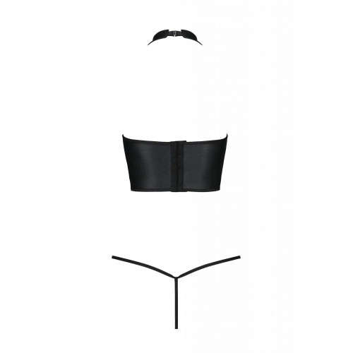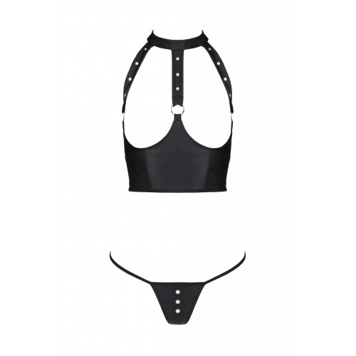 Комплект из эко-кожи с открытой грудью S/M black GENEVIA SET WITH OPEN BRA- Passion